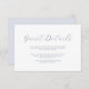 Beautiful muted dusty blue calligraphy wedding guest details card features a pastel powder blue back of the card, and a clean white front with elegant script.