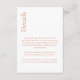 Project a sense of modern simplicity with this classic citrus grove wedding enclosure card. It has a clean minimalist look in white with sunny citrus orange serif text and shares important details with your invited guests. You can include such items as hotel accommodations info, transportation or parking info, your wedding website and more. Personalize the text with any details you wish to provide and enclose these cards with your wedding invitations.