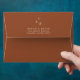 Add a touch of modern chic to your wedding stationery with this stunning envelope. The front features a minimal leaf monogram integrated with the bride and groom's initials in a bold font, gracefully positioned in the left corner. This elegant design extends to the interior flap, fostering a cohesive look.