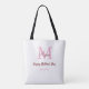 simple minimal mother's day monogram pink name tex tote bag
