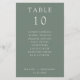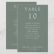 Simple, minimalist sage green wedding table number card with guest names seating chart.