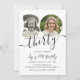 Celebrate a lifetime of memories with this minimalist, simple 30th birthday invitation. The design beautifully honors the guest of honor by showcasing two cherished photos—one from their past and one current favorite—creating a heartfelt, 'then and now' story. This classic layout features elegant script typography, making it a perfect and sophisticated choice for both men and women. It's the perfect way to invite guests to a memorable milestone celebration.