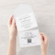 A simple wedding all in one rsvp via online with a QR code template. this design features a simple minimalist QR code rsvp, template via website modern, calligraphy black ampersand layout, elegant seal and send, minimal create your own, design your wedding invitation, add your own no graphic, tri-fold trifold wedding invitation, wedding quest reply online onsite, website response reply rsvp template