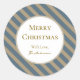 Simple Minimalist Blue and Beige Merry Christmas Classic Round Sticker