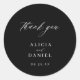Elegant simple minimal black and white wedding favour thank you sticker featuring a classy stylish chic trendy calligraphy script. ++++++++++++++++++++ Easy to personalize with your details! Suitable for formal black tie neutral weddings. +++++++++++++++ Please note that the background colour can be changed to match your wedding colour scheme. If comfortable doing it, you can change it after selecting CUSTOMIZE IT option.