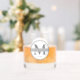 Two-tone grey and white simple minimalist modern monogram and family name with date established design featuring a chevron-style circular frame.