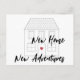 Casual typography script new home new adventures moving announcement postcard featuring a sketched house and red heart. Personalize it with your text and new address on the backside!
