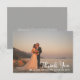 Minimalist photo wedding "Thank You" featuring a single large photo on front with names and wedding date and your unique message and signatures on back. Features a dusky grey background on back. Template placeholder photo courtesy Unsplash. Design by Holiday Hearts Designs.
