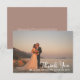 Minimalist photo wedding "Thank You" featuring a single large photo on front with names and wedding date and your unique message and signatures on back. Features a dusky rose background on back. Template placeholder photo courtesy Unsplash. Design by Holiday Hearts Designs.