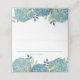 This template design features a wedding watercolor elegant floral place card with blue hydrangea table number flower, botanical foliage reception seating, simple minimalist succulent garden, guest name and table number, minimal dinner guest simple elegant, calligraphy folded banquet seating, elegant watercolor floral succulent, perfect for spring summer fall bouquet, elegant reception seating