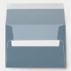 This envelope design features a return address printed on the back flap with a simple blue, minimalist, minimal, elegant style, see matching baby shower invitations, a 5x7, baby dark blue, basic envelope