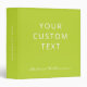 This stylish custom binder features a simple minimalist design of your text and name in a beautiful handwritten script lettering in white on a chartreuse lime background.