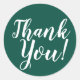 Simple Minimalist Script Thank You Emerald Green Classic Round Sticker