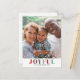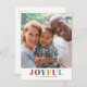 A beautiful simple and minimalist Holiday Design with the word Joyful in a vibrant prism, Technicolor serif font. Decorated with simple white circle dots that give your picture the visual of winter snow, no matter what season your photo was taken. Great for the Holiday Season. Customize and add your own photo image and personalize with your names and/or family name, and the year.
