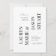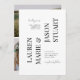 Celebrate your love story with this captivating wedding invitation that seamlessly blends modern minimalism and heartfelt storytelling. The bold typography layout draws the eye, while the addition of three curated photo slots on the back allows you to showcase your unique journey—whether it’s the first date that sparked it all, your engagement moment, or simply snapshots of your life together. This design is a celebration of individuality, giving guests a glimpse into the love they are invited to honour.