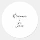 These simple minimalist wedding envelope seals are perfect for a modern wedding. The simple and elegant design features classic and fancy script typography in black and white. Personalize the labels with the names of the bride and groom.