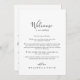 This simple minimalist wedding welcome letter is perfect for a modern wedding. The simple and elegant design features classic and fancy script typography in black and white.