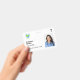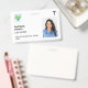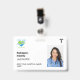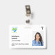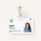 Simple and minimalist custom hospital employee badge in white with the corporate logo, photo, name, and staff role or title. Edit the background colour by clicking on the option to customize the design. Duble-sided, both sides will have the same design unless you want to change it. Available with a lanyard, metal clip or retractable cord. Please get in touch with us if you have any questions or need a personalized design.