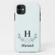 Simple Mint Green Eucalyptus Leaf Monogrammed Case-Mate iPhone Case