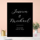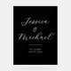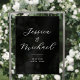 Create your own acrylic wedding sign featuring custom names, date and other wedding details in black and white colour elegant script calligraphy and modern typography. A sleek and minimalist way to greet guests on your special day.