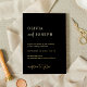 These elegant, real gold foil wedding invitations are simple and minimalist yet very stylish due to the modern handwritten script and clean layout on a dark black background.