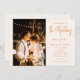 This photo wedding invitation is designed with brown simple and script lettering, on a light pastel beige background. Customize with your own photo, wedding details, and initials on the back.