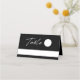 These simple wedding place cards feature stylish typography (Table) in white over a pure black background, as well as white shapes on which to write.