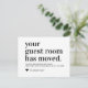 Simple Modern Black Typography Guest Room Moving Announcement