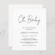 Modern black and white budget baby shower invitation featuring a simple design with "Oh Baby" in a rustic style script typography. This elegant gender neutral invitation with a minimalist layout is great whether you are having a boy or a girl.