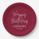 Simple Modern Burgundy Typography Birthday Paper Plate