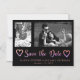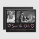 Modern holographic rainbow faux glitter brush script black save the date wedding magnetic card with 2 photos collage - one vertical / portrait oriented and the other horizontal / landscape and two doddle hearts. ++++++++++++++ Personalize it with your photos, names and wedding date!