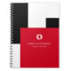 A professional notebook with a pop of colour in a simple yet bold red white and black colour block pattern makes a striking display with graphic appeal. Suitable for any type of business, there is a sample decorative logo on the front that you can replace with your logo or leave as is. Personalize with your name and title or other desired text.
