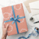 Simple Modern Coral Christmas Holly Wreath Wrapping Paper