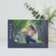 This wedding thank you card features 2 photos with a curved corner. Personalized this modern dark purple thank you with your own message. The background is dark blue.