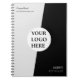 Part of a matching office set collection, including business cards to bring together your professional image. This business oriented notebook features a space for your logo, your position, your company website, and your name. Perfect for any kind of professional; business people, accountants, designers, nail techs, store owners, notaries, cleaners, realtors, and more! Features attractive and elegant black and white colours.