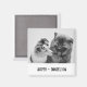 Add your own photo and text to create a unique photo gift. This refrigerator magnet is ready to be customized with your photo and your own names or message in distressed black typewriter style lettering. The simple, modern black and white style looks great with black and white or colour photos. Show off a favourite photo of your pets, a family photo or a vacation memory.