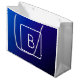 Simple Modern Dark Blue Ombre Gradient & Monogram Large Gift Bag
