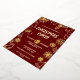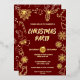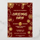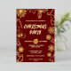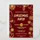 This Simple Modern Dark Red and Gold Real Foil Elegant Xmas Party design features a poinsettia, a holly and berries branch, a candy cane, a pine, snowflakes and stars, a christmas hat, a stocking and more. The back of the invitation is a festive pattern of the same Christmas illustrations. You can customize the background colour. This design is perfect for a Christmas party. You can customise all the details for your event. See the whole matching collection!