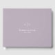 This simple, minimalistic, and modern wedding guestbook features a monogram with modern lettering in white on dusty lilac / purple background. You can find matching products at my store.
