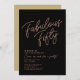 Simple black & rose gold "Fabulous Fifty" personalized 50th birthday invitation with classy and modern typography. Customize it easily with name, age, and party details.