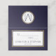This modern, simple, and elegant faux printed gold stripe outline on navy blue and white wedding place card is ideal for the classy and formal event. It's classic and sophisticated design is perfect for the trendy and stylish marrying couple. Personalize with your own message on the front as well as a customized monogram initial on the back. All photo print design.