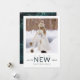 Upload your photo to this Happy New Year season greetings, a simple black and green pine photo and typography with white frame