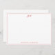 This modern, clean minimalist custom flat note card can be personalized with the addition of your initials and name. The thin line border is in strawberry red as is the typography.