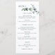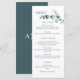 This timeless menu card will enhance any place setting. This design features a simple eucalyptus branch. Give your guests all the information they need in a clean serif font. The back features your monogram against a full colour green background.