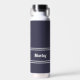Simple Modern Minimal Name Stylish Navy Blue Water Bottle