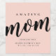 Simple pink & white "Amazing Mom" personalized Mother's Day wine bottle label with classy, elegant and modern typography. Customize with short greeting and kids' names. Perfect for Mother's Day gift, party favour or birthday gift for Mom.