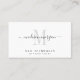 Modern nail technician business card featuring a soft screened back gray monogram initial paired with elegant modern script typography, created for beauty professionals who prefer a refined, minimal look. Includes a clean title line and Gel, Acrylic, Nail Art subheading, offering a polished identity for nail technicians for client interactions, networking, and bookings.