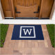 Simple Modern Navy Blue Graphic Border Monogram Doormat
