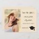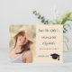 On front: Add your own vertical size photo of the graduate. A modern champagne colored background, black text. Templates for a name and date. The name and the text: Save the Date are written with a modern hand lettered style script. With a cap, tassel topper.
