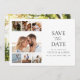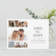 Create your own wedding save the date cards featuring your favourite photos. Add your names and details to an elegant minimalist typography design alongside a simple photo collage grid. Additional full page photo on reverse side.